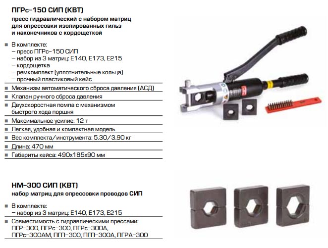 Для монтажа обжимного соединителя вам обязательно понадобится механический или гидравлический пресс со специальными матрицами E173 и E215.