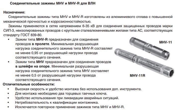 Остальные марки СИП, например, СИП-1 и СИП-2, допускается соединять специальными зажимами, такими как: ГСИ-Ф и MJPT. Данные марки проводов допускается соединять даже в пролётах, используя для этих целей спецзажимы.