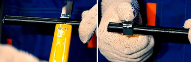 После срыва, термоусаживаемый чехол надвигают на затянутый зажим и с помощью газовой горелки разогревают трубку, постепенно смещая зону разогрева от середины к краям.