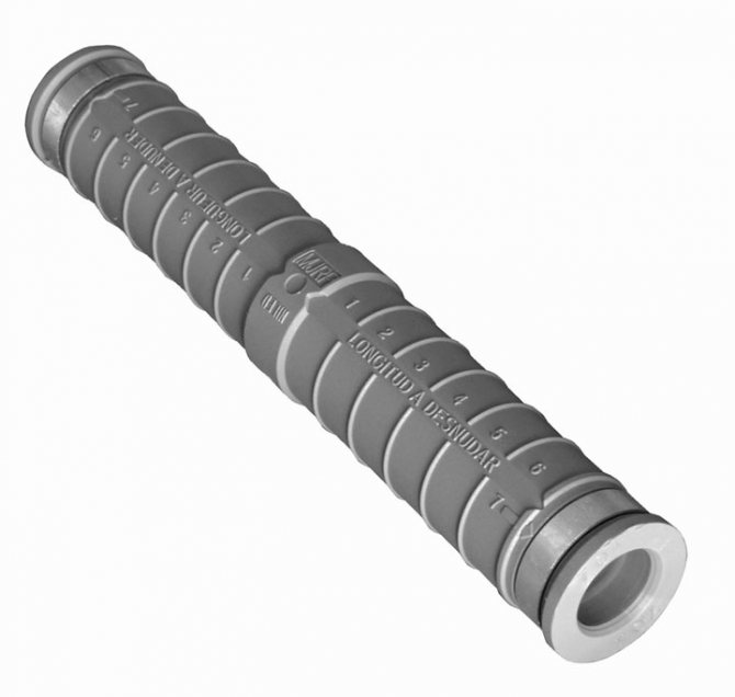 - После этого нужно снять изоляцию с жилы СИП, строго на нужную глубину гильзы. При этом из гильзы для опрессовки СИП провода не должно быть видно открытой жилы;
