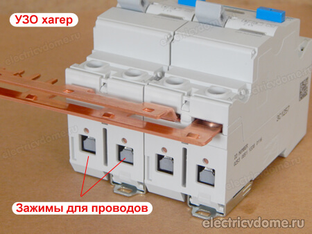 Это очень удобно, так как несколько УЗО быстро соединяются между собой. Для этого нет необходимости делать множество перемычек с обязательным соблюдением цветовой маркировки.