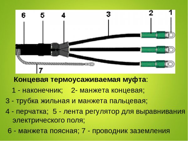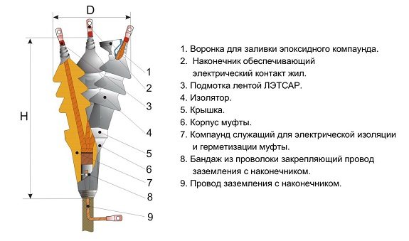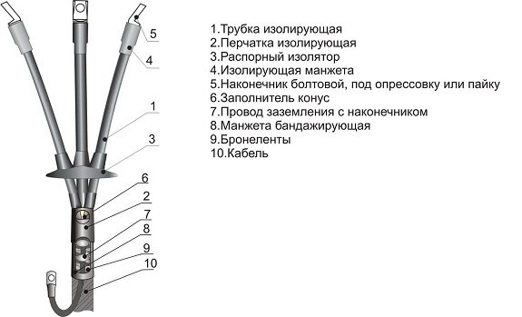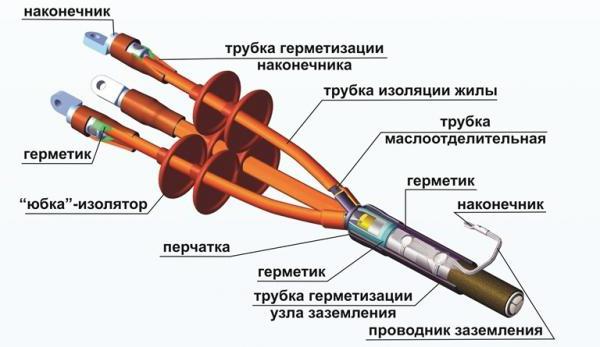 - концевая муфта, ее используют для подключения концов силовых линий распределительным шинам электрооборудования.