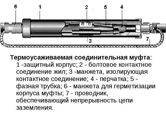 Надежная стыковка кабелей обеспечивается применением термоусаживаемых соединительных устройств. Они не только создают дополнительную изоляцию в месте установки, но и позволяют стыковать проводники разного сечения.