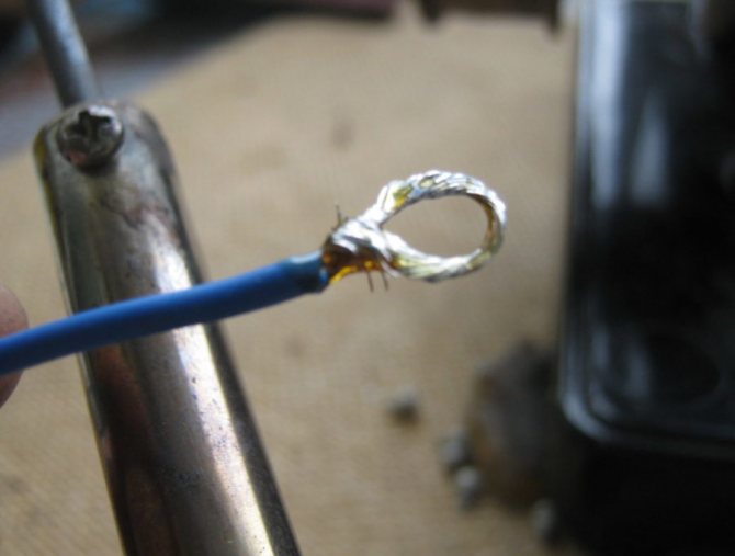 Если провод медный, то ушко под болт можно залудить припоем. Загибать кольцо необходимо по направлению закручивания винта, чтобы в процессе затяжки ушко закручивалось вокруг болта, а не наоборот.