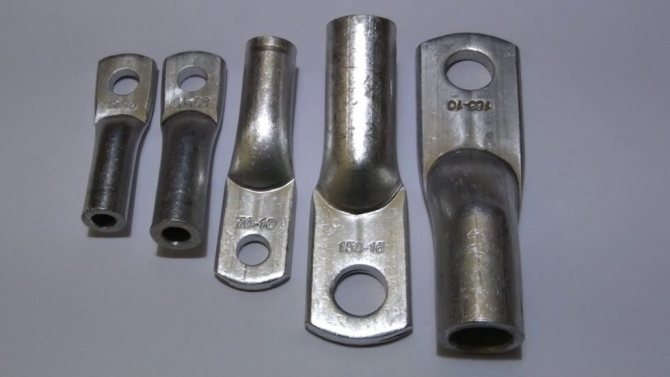 Если размеры позволяют, модель наконечника указывается на его поверхности. Если он слишком мал, то на корпусе изделия отштамповывается номинальное сечение подключаемого кабеля. Например, цифра «4» рядом с крепежным отверстием означает, что в наконечник следует вставлять жилу сечением 4 кв. мм.