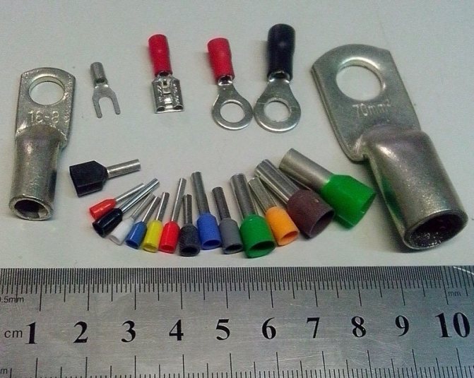В электромонтажной практике встречаются десятки видов соединителей. Такое разнообразие обусловлено широким списком используемых проводов. Под каждый тип кабеля подбирается свой наконечник. Он должен соответствовать по материалу и сечению токоведущей жилы.