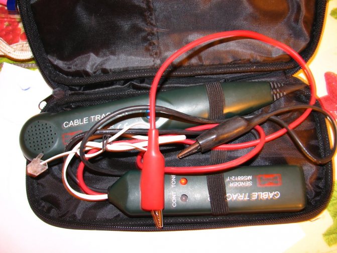 Самый быстрый способ обнаружения места разрыва фазного проводника – поиск с помощью трассоискателя. Прибор состоит из приемника и генератора. Генератор подключают к поврежденному проводу: минусовая клемма прибора крепится к целой жиле и заземляется на подъездном щите, плюсовую клемму подсоединяют к поврежденной жиле.