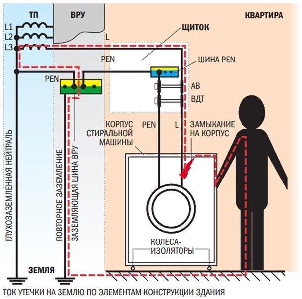 Тогда любое нарушение изоляции или иная неисправность, которая приводит к появлению опасного потенциала на корпусе, приведет к срабатыванию защитных автоматов.