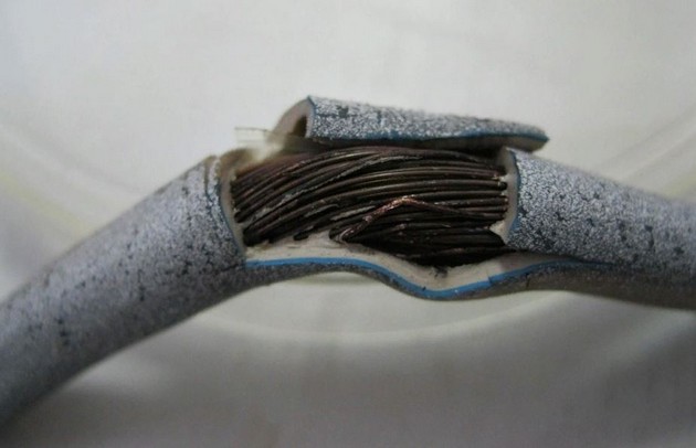 Если причиной нарушения изоляции послужил элемент крепления (пережатый хомут из металла), способ монтажа надо изменить.