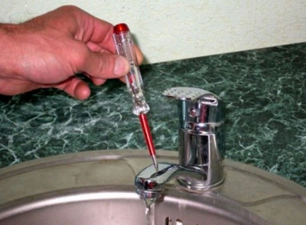 Индикаторная отвертка — практически идеальный (хотя и не точный с измерительной точки зрения) прибор для поиска. Принцип ее работы как раз построен на работе токов утечки. Достаточно найти участок металла без краски и коснуться измерительным контактом. Поверхность сантехнических приборов как раз может стать идеальным проводником электричества от бойлера или стиральной машинки.Необходимо включить все электроприборы в рабочий режим и пройтись по заранее составленному плану (чтобы ничего не забыть), коснувшись всех потенциально проблемных мест.
