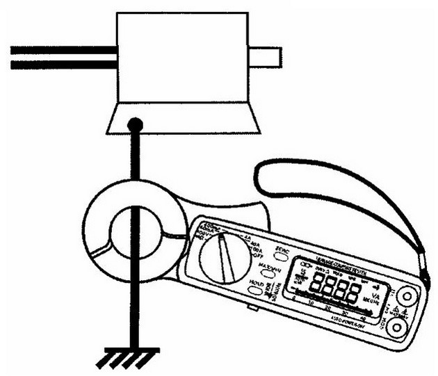 Штатный режим измерения тока утечки предусмотрен, но для этого электроприбор должен иметь выносной (отдельный) заземляющий проводник. Если есть возможность подключить на корпус отдельную клемму — необходимо соединить переносной заземлитель с корпусом, и замерить клещами ток при включенном состоянии электроприбора.
