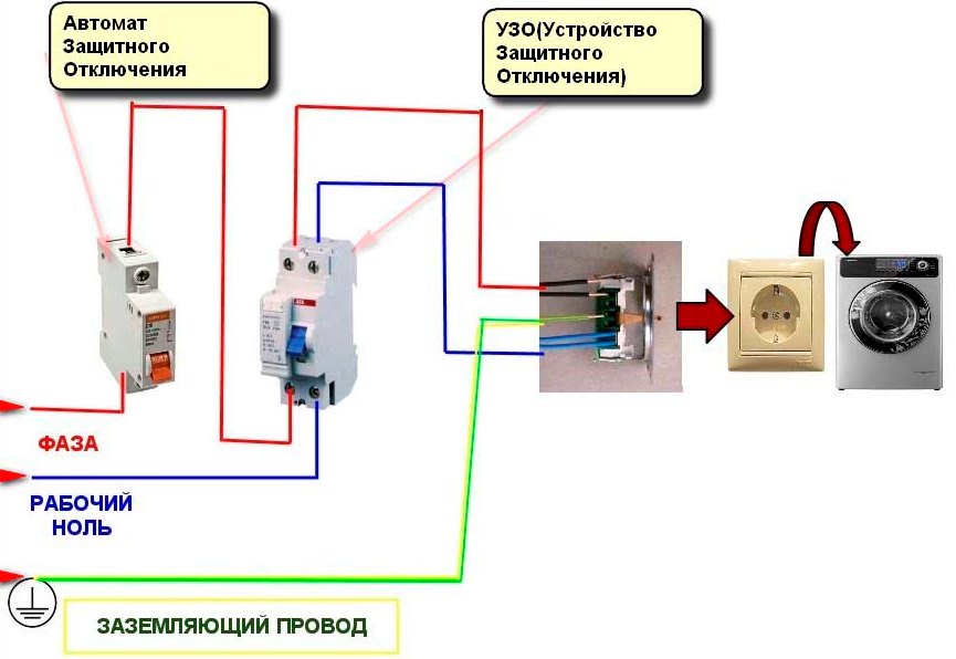 Если защитное устройство срабатывает при включении стиральной машины, то наиболее вероятная причина в неправильном подключении агрегата. Необходимо проверить: