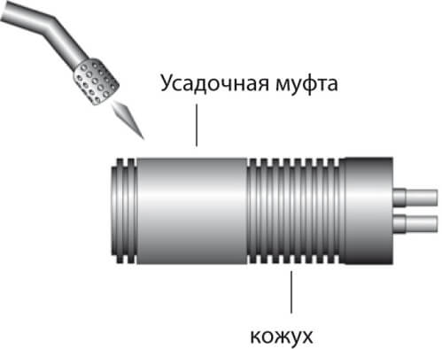 Термоусаживаемые кабельные муфты являются последним и самым современным поколением подобных изделий. Принцип их действия основан на использовании свойств полимеров, обладающих так называемой памятью формы. Подобные материалы способны растягиваться при нагревании, сохраняя вновь приобретенные размеры до следующего нагревания. В таком состоянии они поставляются к месту практического использования, после чего надеваются на элементы кабельной системы, которые требуется соединить. Далее следует повторное нагревание до температуры 120-140 градусов с помощью специальных горелок или фена. В результате происходит термоусадка изделий, возвращающих исходные размеры и форму и плотно охватывающих элементы кабеля. Благодаря этому создается герметичная, прочная и надежная конструкция узла соединения.