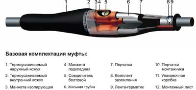 Соединение кабелей между собой и с другими элементами систем электроснабжения и связи происходит с помощью специальных муфт. Существует большое количество подобных изделий, например, по материалу изготовления они делятся на чугунные, латунные, свинцовые, эпоксидные и термоусаживаемые. Последний вариант получил особенно широкое распространение в последнее время. Это объясняется сочетанием нескольких очевидных преимуществ, главными из которых выступает сочетание удобства монтажа с получением надежного и долговечного соединения. Термоусаживаемая кабельная муфта представляет собой комплект материалов, при использовании которых обеспечивается целостность кабеля – электрическая, конструктивная и механическая. Основными параметрами изделия являются:
