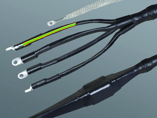 Такой метод изоляции трехжильного кабеля концевой муфтой наиболее популярен.