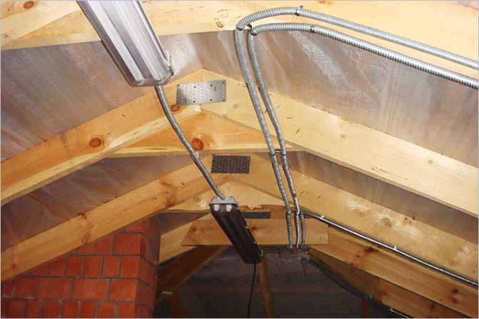 - Открытую проводку чаще всего применяют в домах, изготовленных из сгораемых материалов. В этом случае достаточно использовать металлические трубы, короба или гофру для прокладки кабеля или провода. Кстати при использовании кабеля можно обойтись и менее жесткими требованиями.