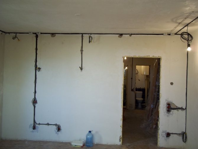 - Если же вы не хотите штробить стены, то вполне возможно прокладка провода и открытым способом. В этом случае для защиты проводов от механических повреждений можно использовать изделия из сгораемых материалов.
