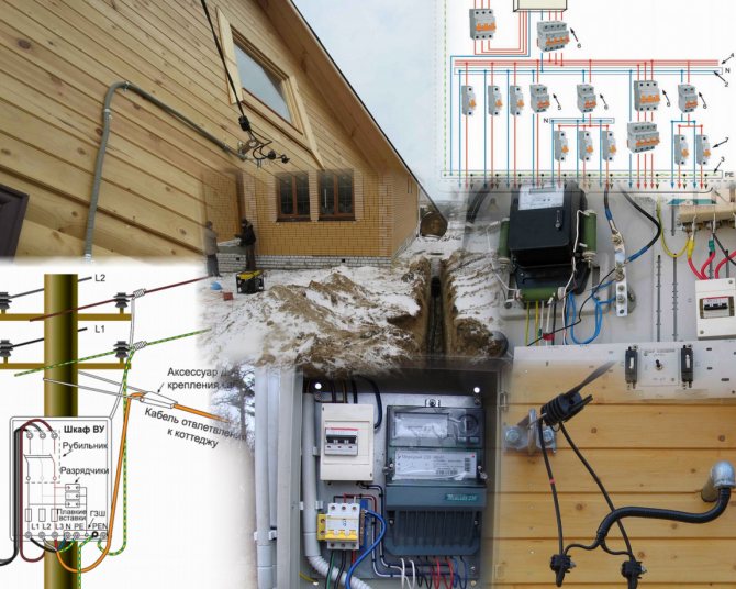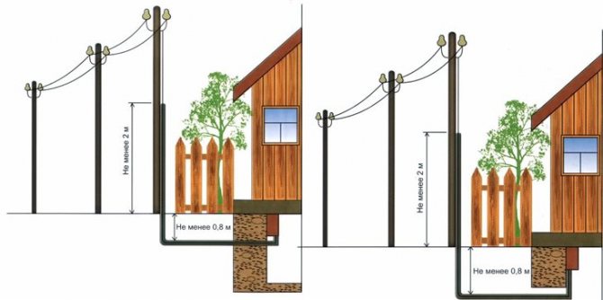 Участок от магистрального столба до дома всегда самый аварийный, так как он часто обрывается сходящим с крыши снегом, повреждается ветками растущих на участке плодовых деревьев. Именно его чаще всего и стараются проложить под землей. Этим же способом лучше всего тянуть кабель от дома к бане, гаражу и другим хозяйственным постройкам, чтобы не устанавливать на участке лишние столбы.