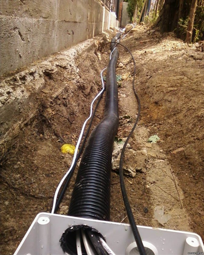 В современный дом помимо электрического заходит множество кабелей – телефонные, контрольные, компьютерные, телевизионные. Чтобы не опутывать его проводами, их все можно завести внутрь, объединив в один пучок, а труба или гофра для прокладки кабеля в земле защитит его от блуждающих токов, грунтовой воды, грызунов и различных повреждений.