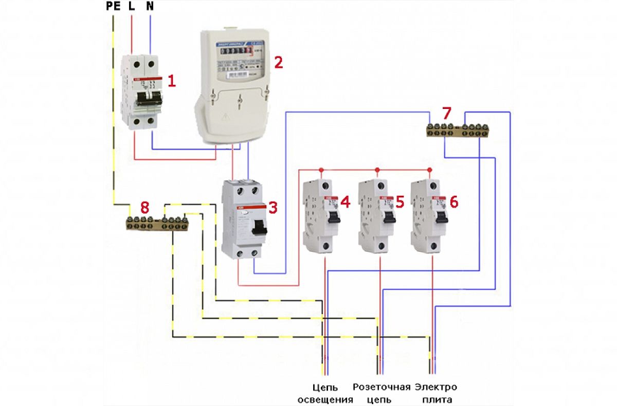 Что касается УЗО, то здесь возможно два варианта. Если УЗО ставят на несколько групп потребителей, то оно идет первым, а за ним уже автоматические выключатели на каждую группу.