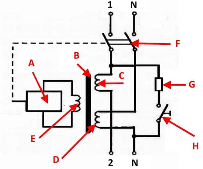 В случае, если вследствие нарушения изоляции бытового электроприбора, через фазный провод пойдет ток, больший, чем через нулевой, в магнитопроводе трансформатора появиться магнитное поле. Если разность токов превысит IΔn, то в дополнительной обмотке наводится ЭДС достаточной величины, чтобы УЗО сработало и отключило подачу электроэнергии в проводку.
