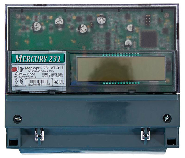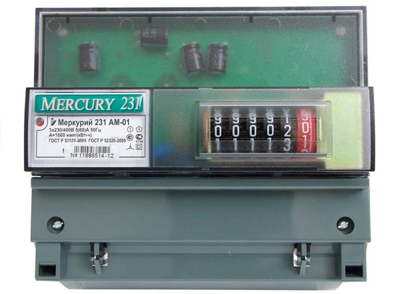 Меркурий 231 АМ-01 – коммерческая модель для учета динамичной электроэнергии в 1-у сторону – отсчет ведется механическим устройством в 3-х или 4-звеньевой сети переменного тока. Функционирует как самостоятельно, так и в системе АСКУЭ.