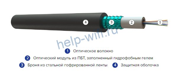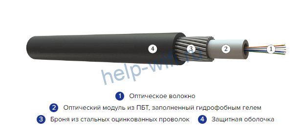 - как правило, в кабеле присутствует броня (существует множество разновидностей);