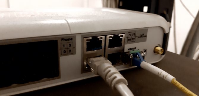 Его задача заключается в превращении оптического сигнала в электрический и наоборот. От него прокладывается стандартная витая пара и подключается к сетевому оборудованию, например, домашнему роутеру.