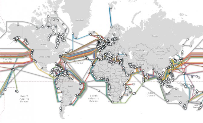 В целом, при помощи ВОК построена вся Мировая Паутина. Ее сети тянутся от берегов США по всему земному шару в виде подводных коммуникаций. Хрупкий кабель защищен толстостенной изоляцией, а укладывается он при помощи специальных кораблей под грунтом на самом дне океана.