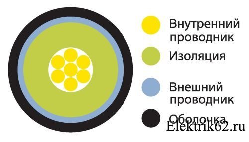 Например, обозначение в названии кабеля РК 75 означает, что сопротивление проводника — 75 Ом. Данная информация предназначена для специалистов. Вкратце можно сказать, что этот кабель идеально подходит для передачи видеосигнала от антенны или видеокамеры до приемника (телевизора) и разводки видеосигнала на несколько источников.