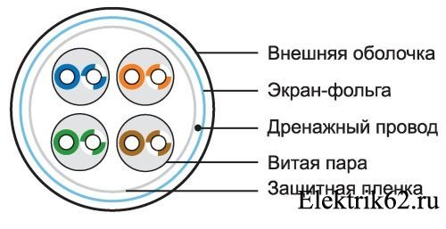 - FTP, или фольгированная, с экраном из алюминиевой фольги;