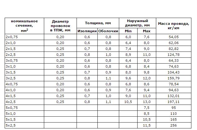 Для многожильных проводов рассчитать сечение провода можно, выяснив параметр для одной из жил (обычно они одинаковые) и умножив его на количество.