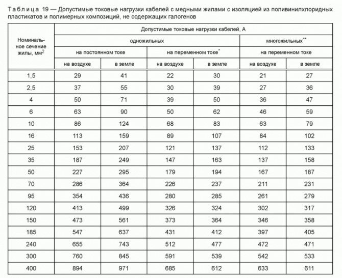 - Например, если у вас получилось после исчислений 32А, то в таблице найдете наиболее подходящий с большей стороны 38А 4 миллиметрового сечения.