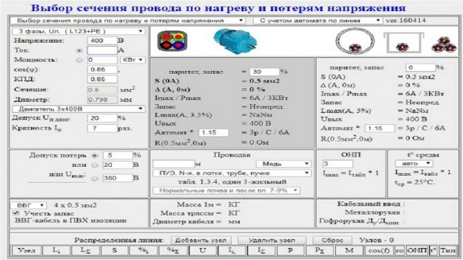 Онлайн-калькулятор расчета сечения кабеля