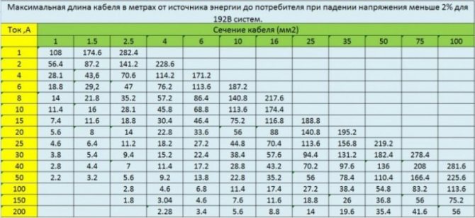 - Если выбирать подходящий материал по длине, следует учитывать, что внутри кабеля сопротивление доходит до больших значений.