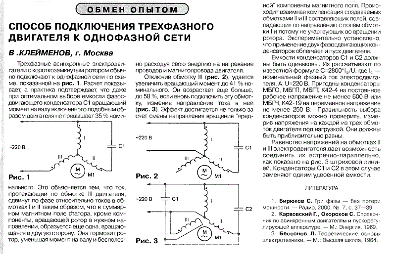 На каждые 100 ватт электрической мощности трехфазного электродвигателя должно приходиться 7 микрофарад.