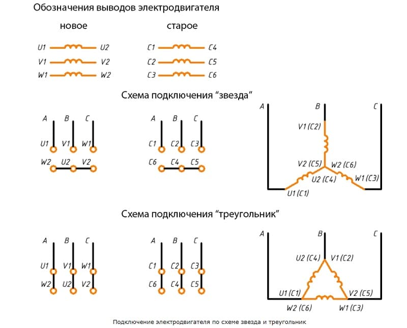 Подключение двигателя по схемам «звезда» и «треугольник»