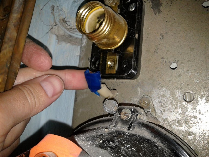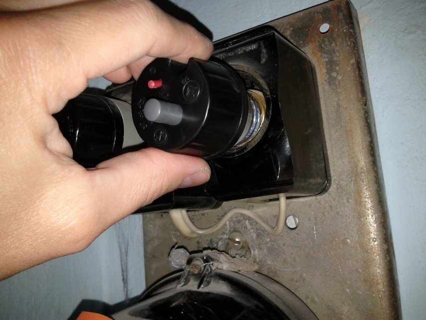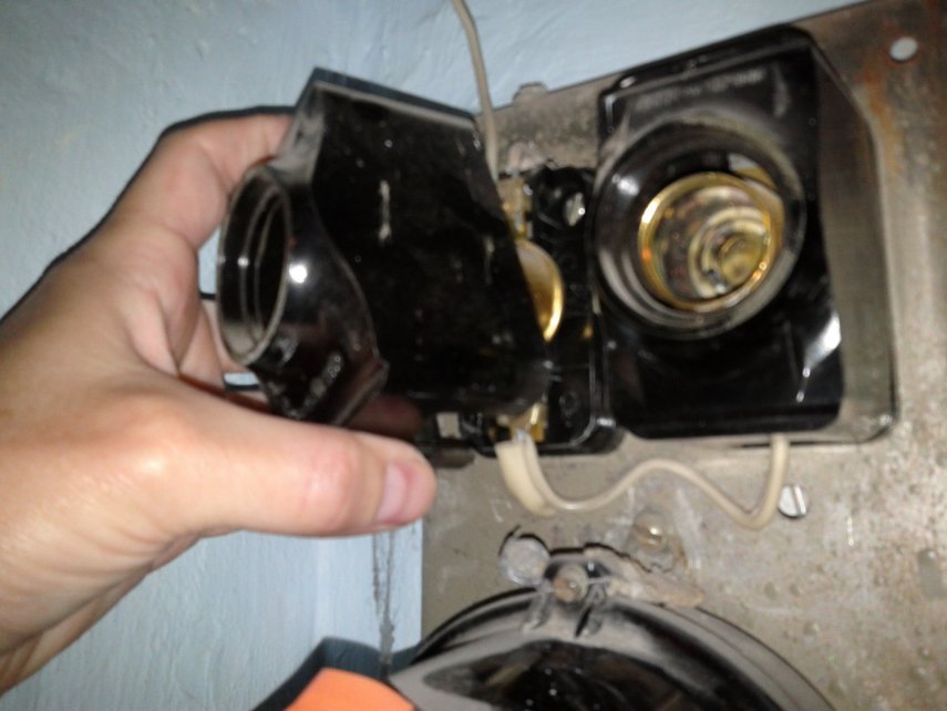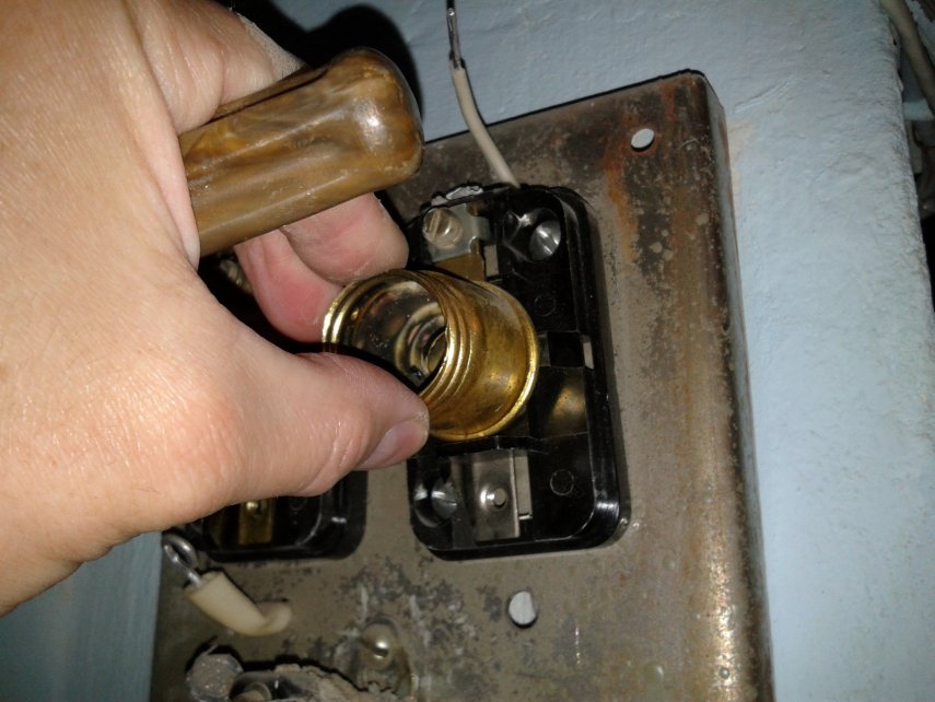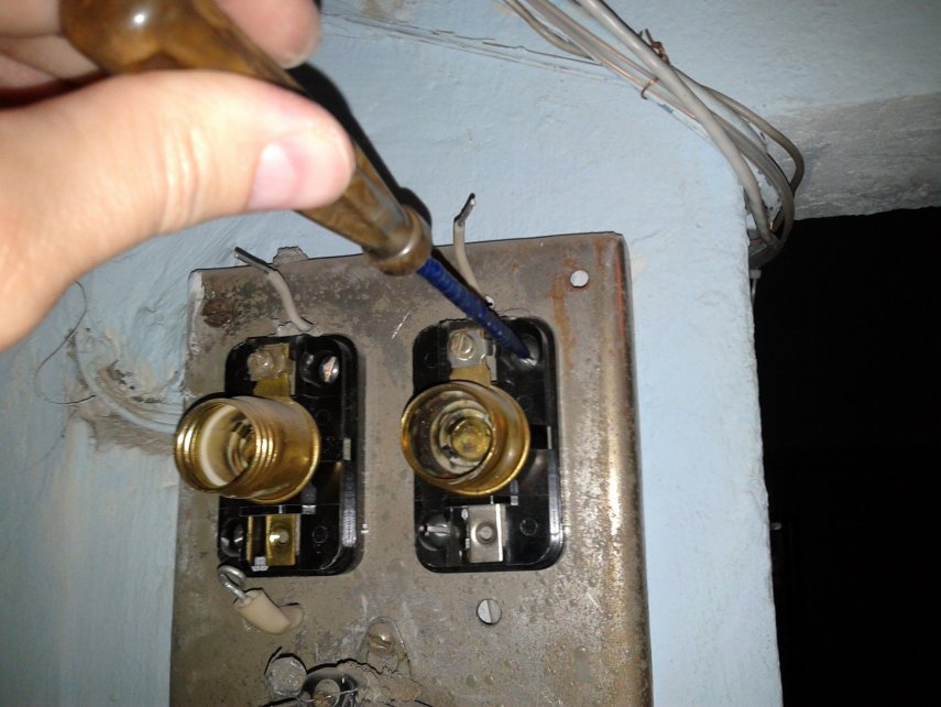 Освобождаем фазный, приходящий провод и аккуратно отводим его в сторону.