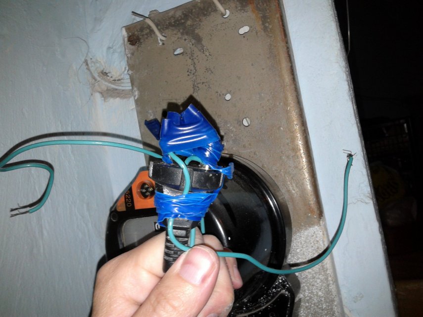 Зачищаем провода, накручиваем их на концы вилки дрели, и изолируем все это лентой ПВХ.