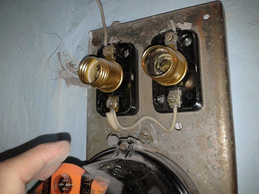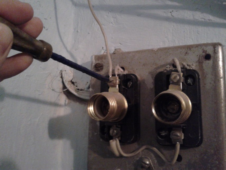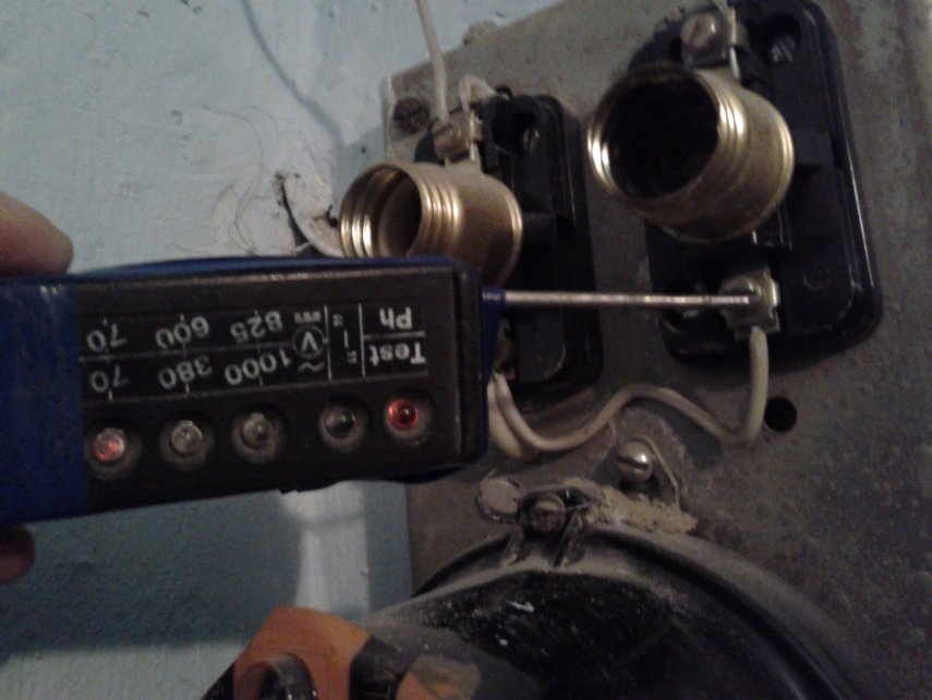 Далее, находим указателем напряжения фазный, приходящий провод.