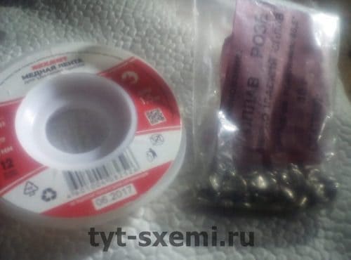 Термоскотч (или алюминиевый), оплетка для снятия припоя, флюс (подойдет простой RMA223), припой ПОС, а также сплав Розе. И чистящее средство (например, бензин калоша, изопропиловый спирт или же FLUX OFF).