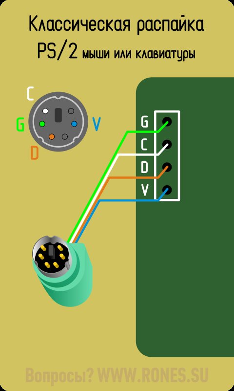 Часто обращаются с вопросом: «Оторвался провод от клавы, куда что паять?» или: «Собака сжевала разъём мыши. Как припаять новый?»