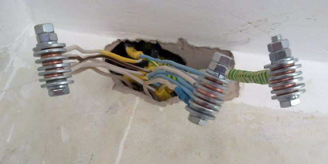 Чтобы соединить провода данным способом, необходимо иметь болт необходимого размера, гайку и несколько шайб, что зависит от количества соединяемых проводников. Соединение простое, доступное и весьма надежное.