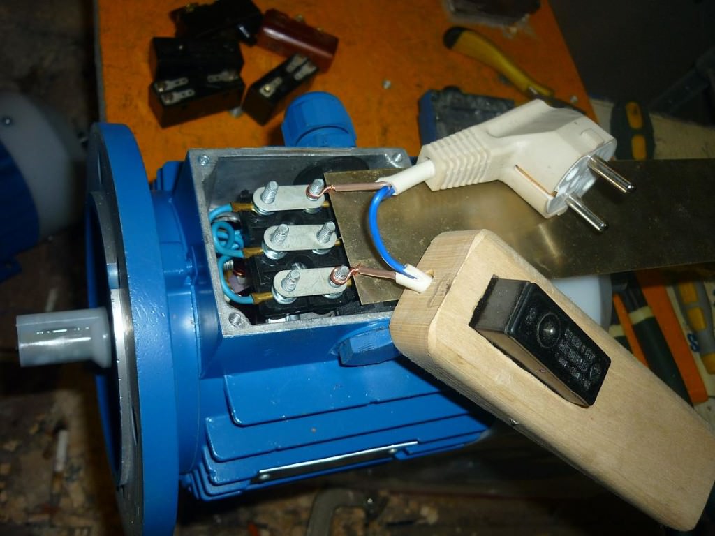 - Для подключения двигателя к бытовой сети зачастую применяют фазосдвигающий конденсатор.